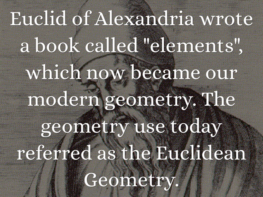 Euclid of Alexandria wrote a book called "elements", which now became our modern geometry. The geometry use today referred as the Euclidean Geometry.
