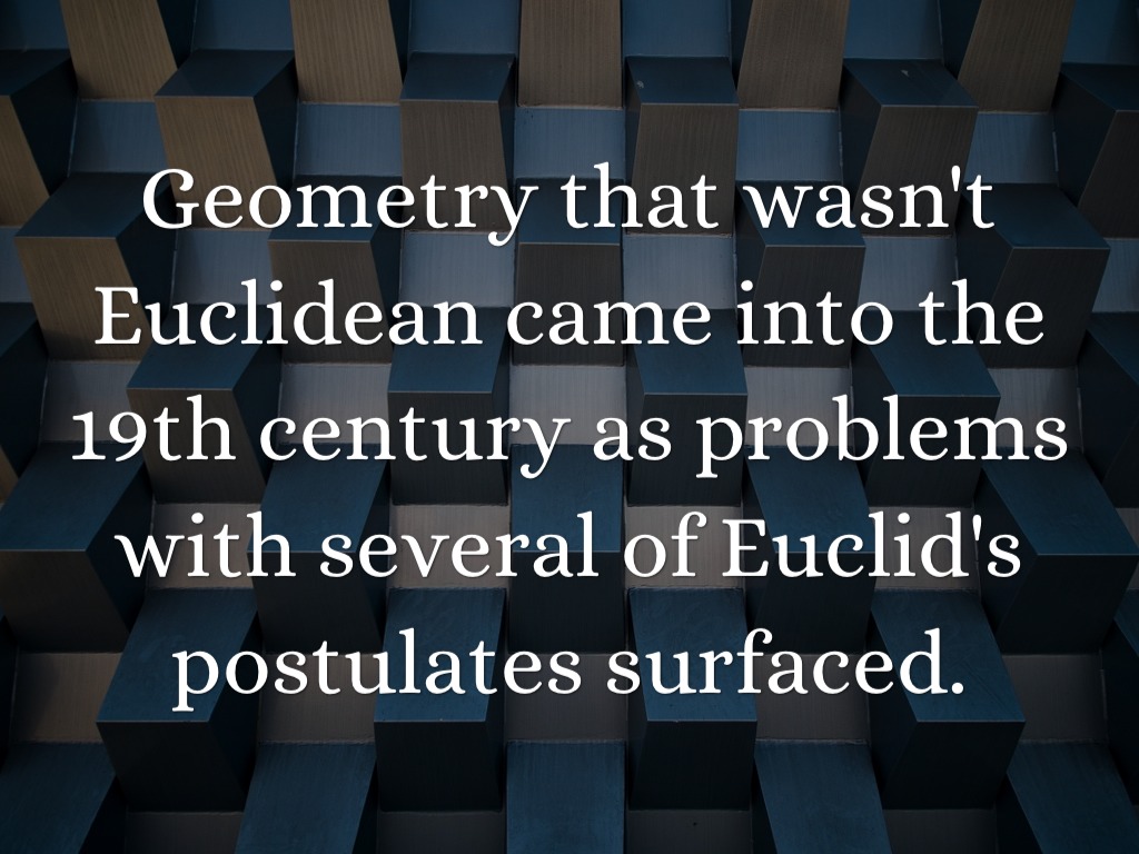 Geometry that wasn't Euclidean came into the 19th century as problems with several of Euclid's postulates surfaced.