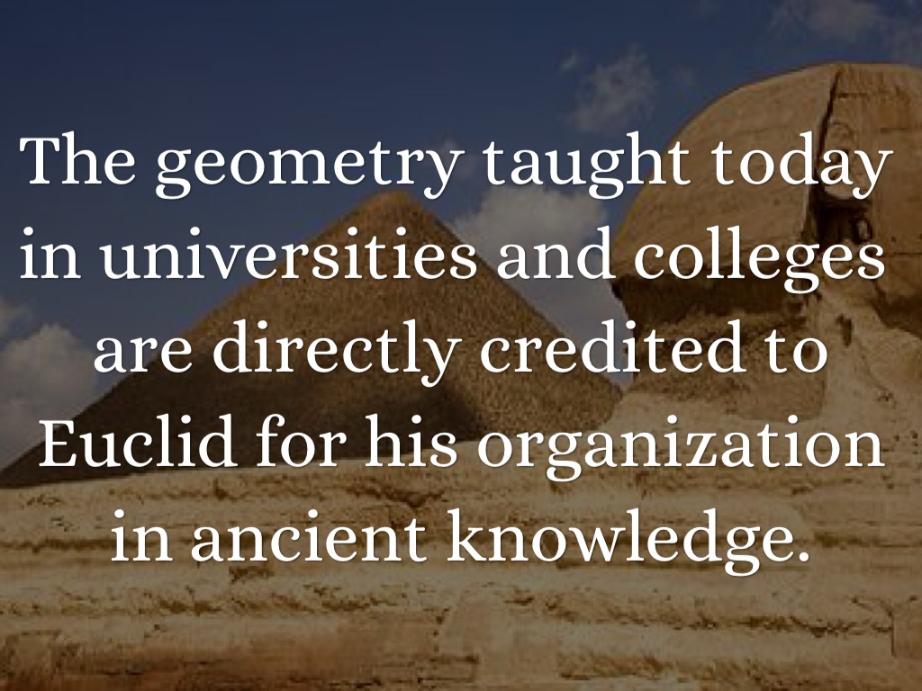The geometry taught today in universities and colleges are directly credited to Euclid for his organization in ancient knowledge.
