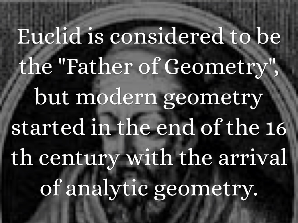 Euclid is considered to be the "Father of Geometry", but modern geometry started in the end of the 16 th century with the arrival of analytic geometry.