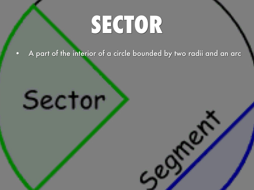 • A part of the interior of a circle bounded by two radii and an arc