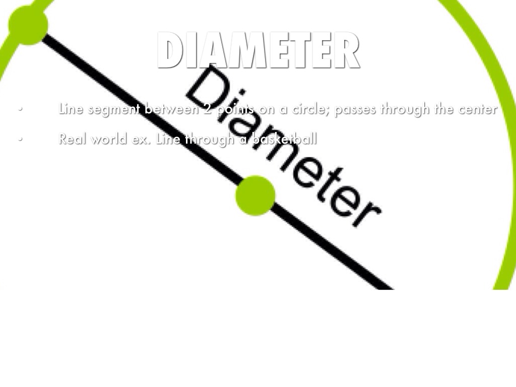 • Line segment between 2 points on a circle; passes through the center