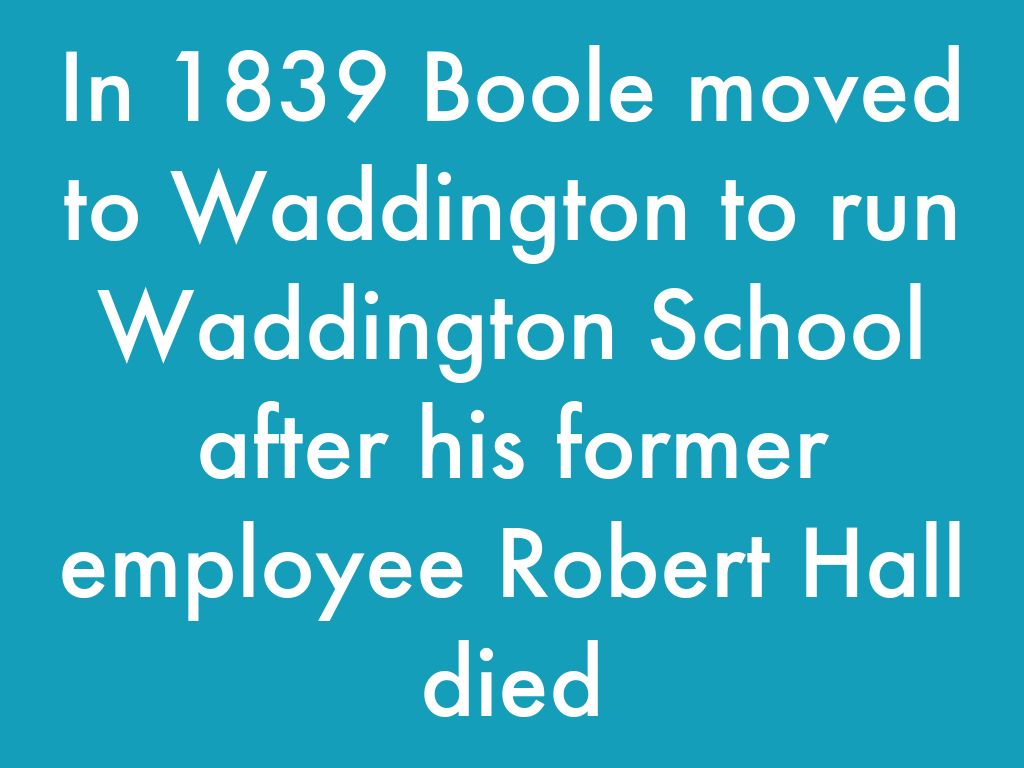 In 1839 Boole moved to Waddington to run Waddington School after his former employee Robert Hall died