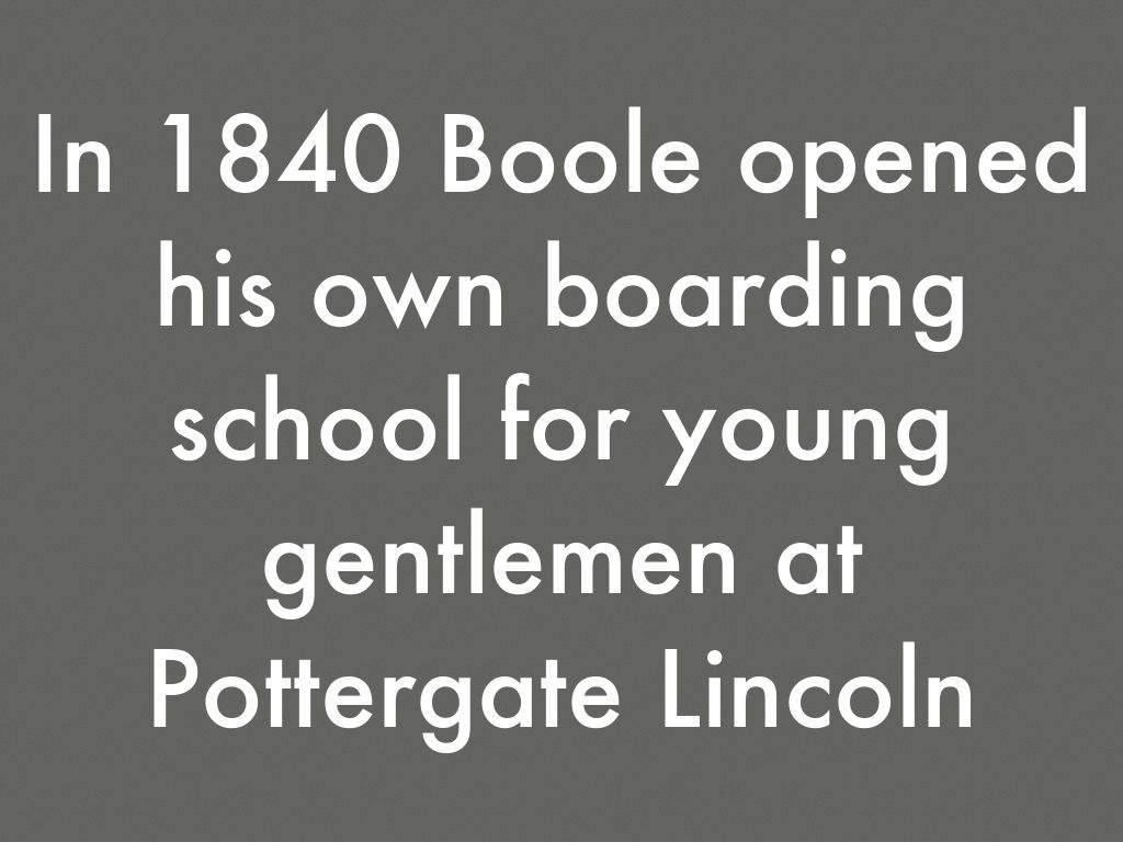 In 1840 Boole opened his own boarding school for young gentlemen at Pottergate Lincoln