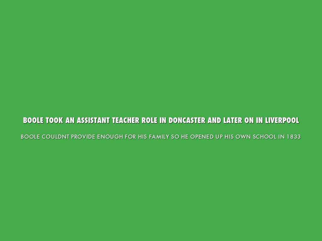 BOOLE TOOK AN ASSISTANT TEACHER ROLE IN DONCASTER AND LATER ON IN LIVERPOOL