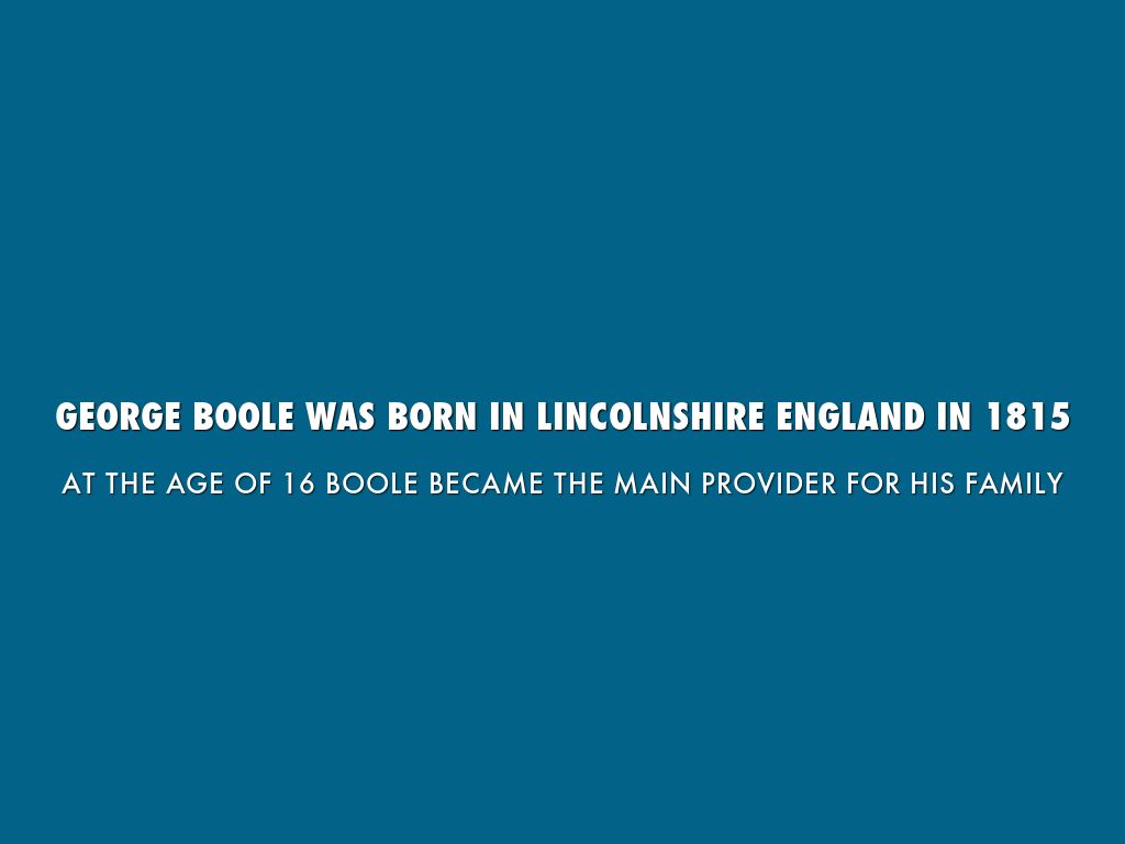 GEORGE BOOLE WAS BORN IN LINCOLNSHIRE ENGLAND IN 1815
