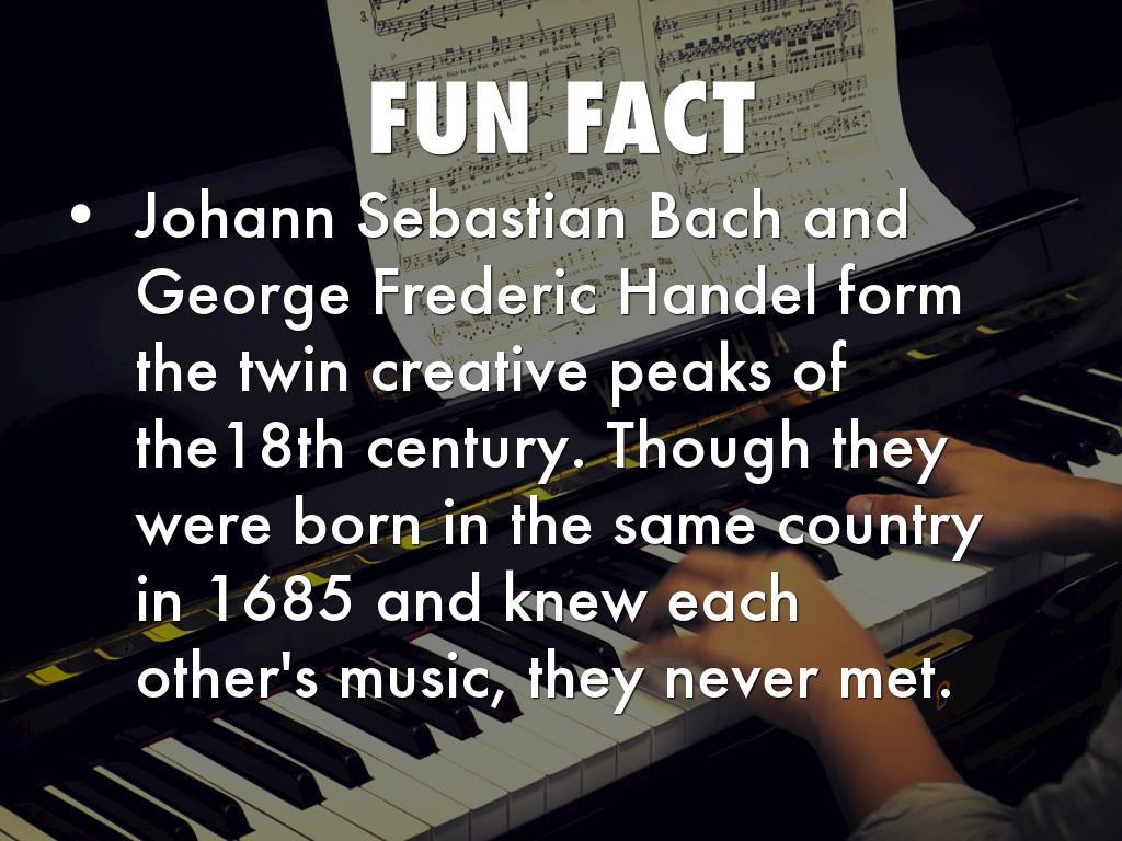 Johann Sebastian Bach and George Frederic Handel form the twin creative peaks of the18th century. Though they were born in the same country in 1685 and knew each other's music, they never met.