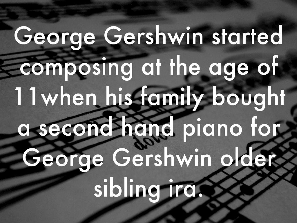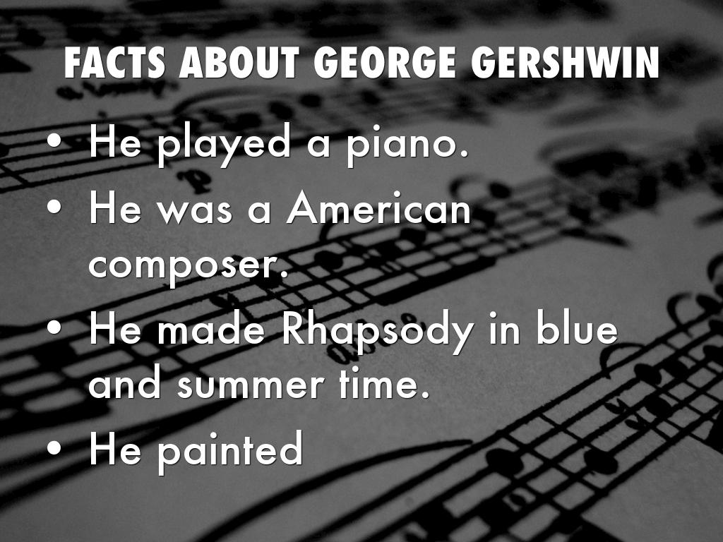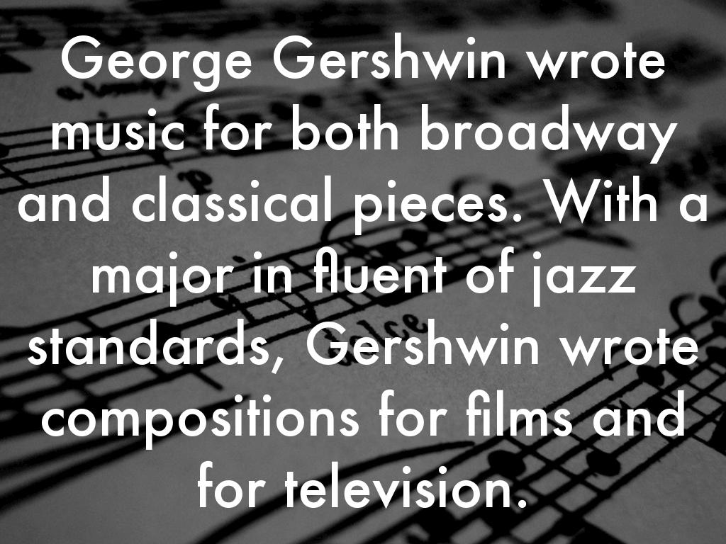 George Gershwin wrote music for both broadway and classical pieces. With a major in fluent of jazz standards, Gershwin wrote compositions for films and for television.