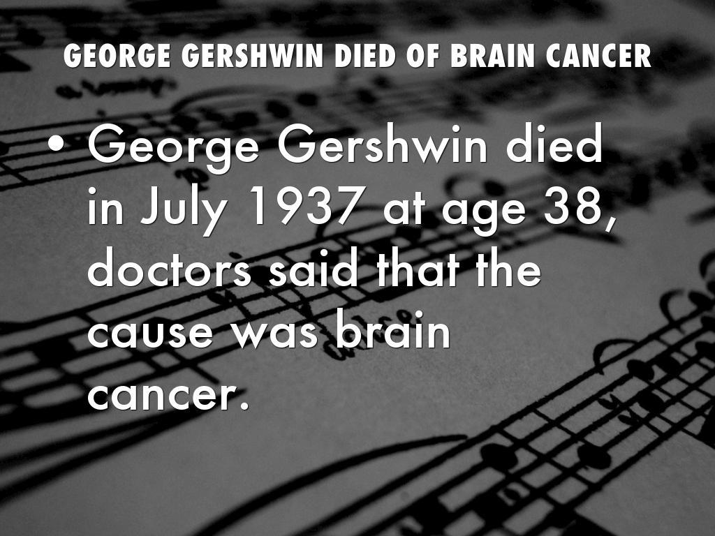 Early in 1937 Gershwin began to complain of blinding headaches and he got diagnosed with a Brain tumor. An operation was unsuccessful and Gershwin died on July 11at the age of 38