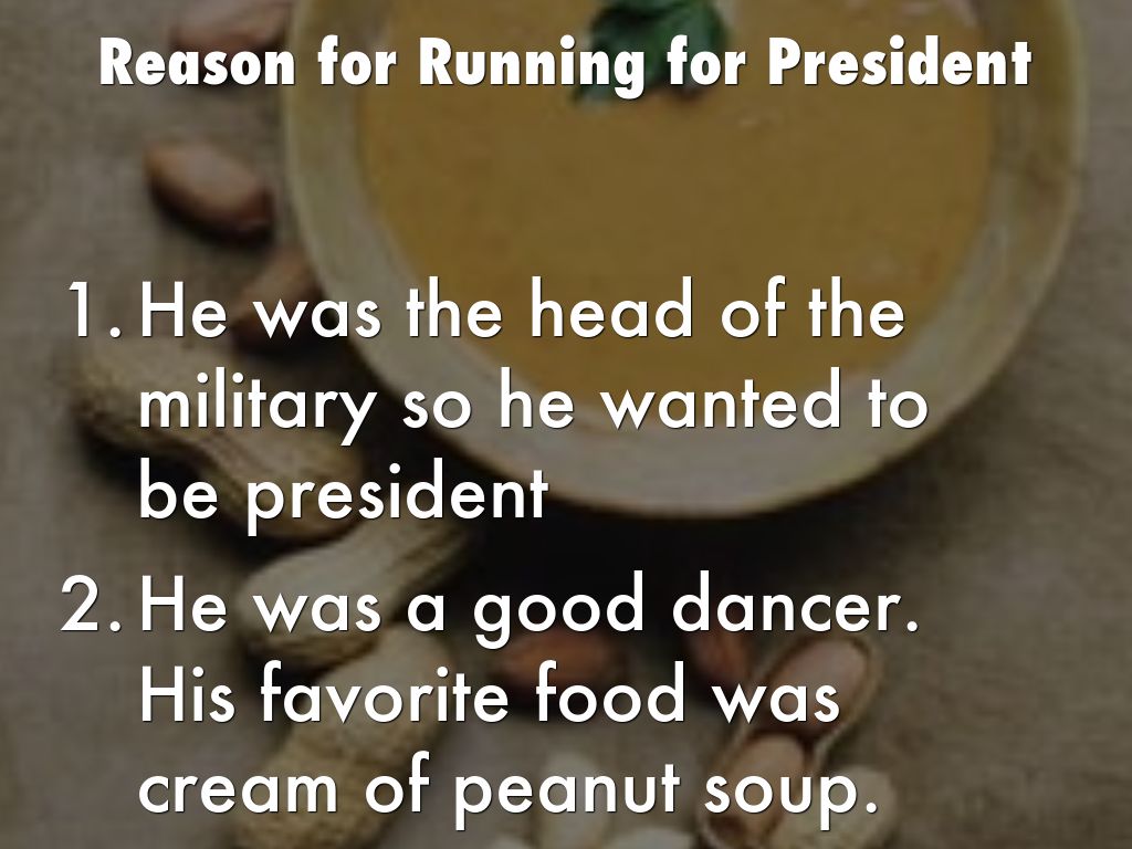 • He was a good dancer. His favorite food was cream of peanut soup.