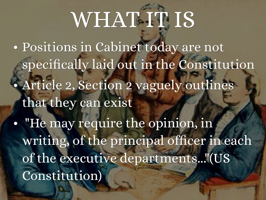 • Positions in Cabinet today are not specifically laid out in the Constitution