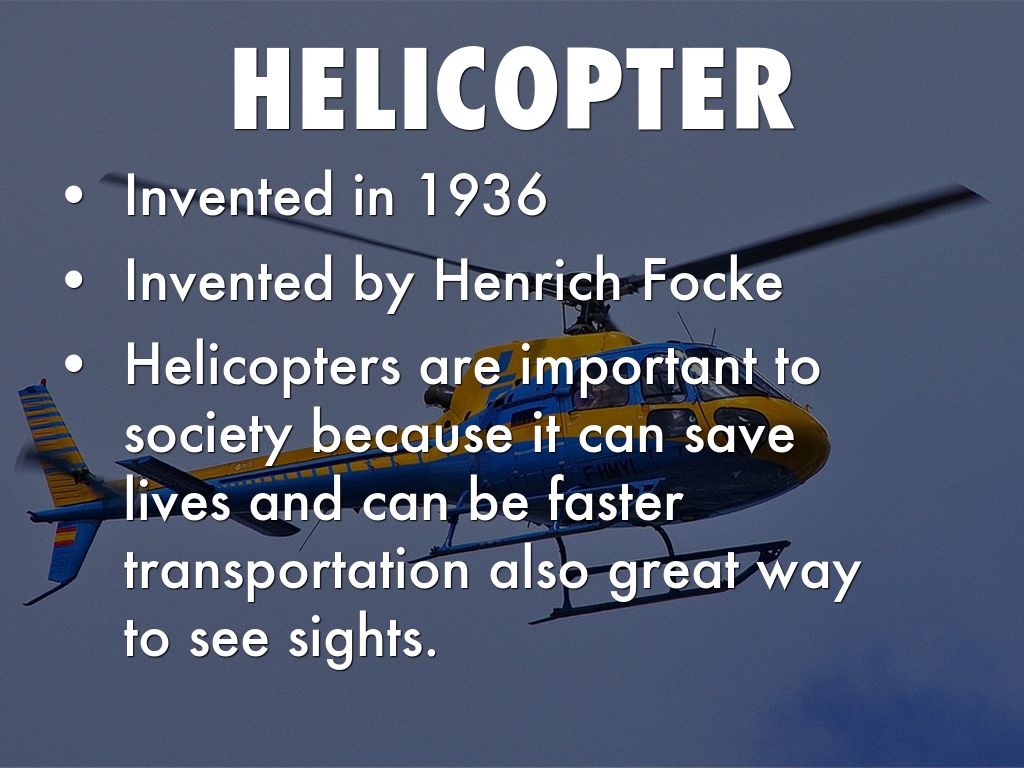 Helicopters are important to society because it can save lives and can be faster transportation also great way to see sights.