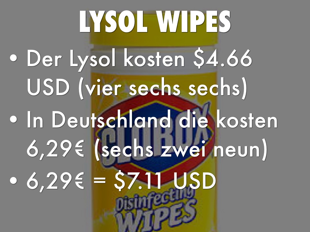 Der Lysol kosten $4.66 USD (vier sechs sechs)