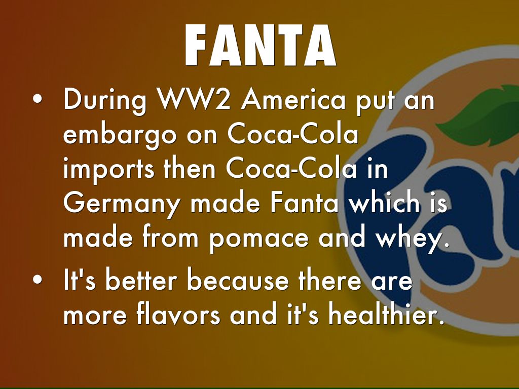 During WW2 America put an embargo on Coca-Cola imports then Coca-Cola in Germany made Fanta which is made from pomace and whey.