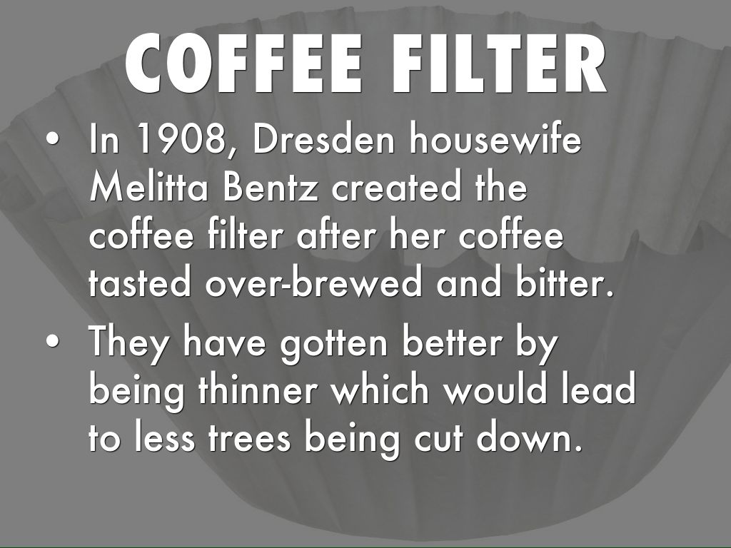 In 1908, Dresden housewife Melitta Bentz created the coffee filter after her coffee tasted over-brewed and bitter.