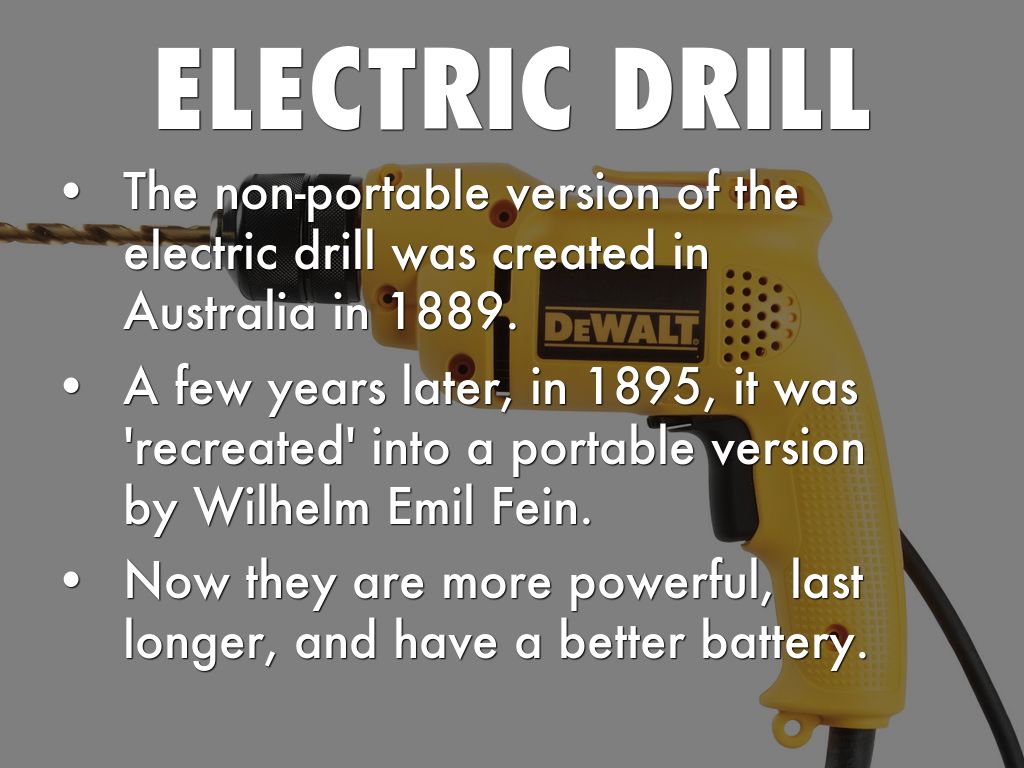 The non-portable version of the electric drill was created in Australia in 1889.