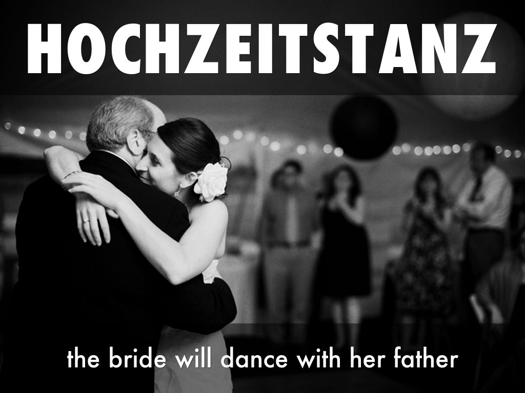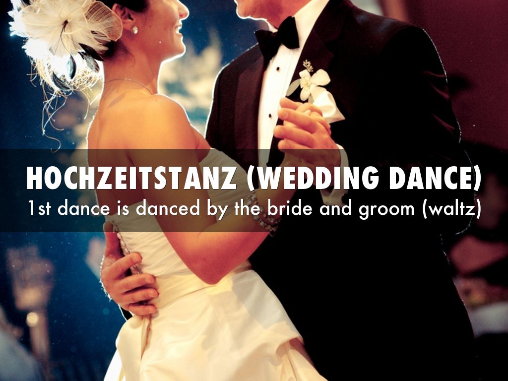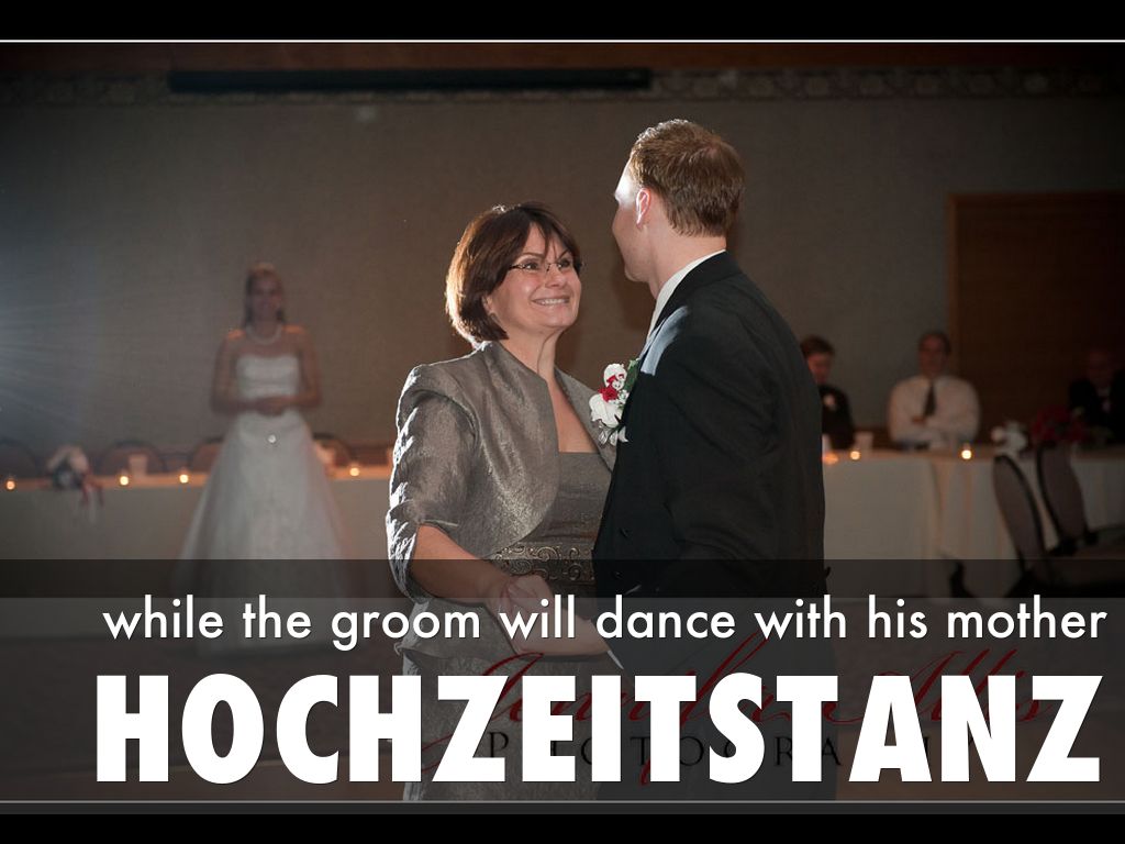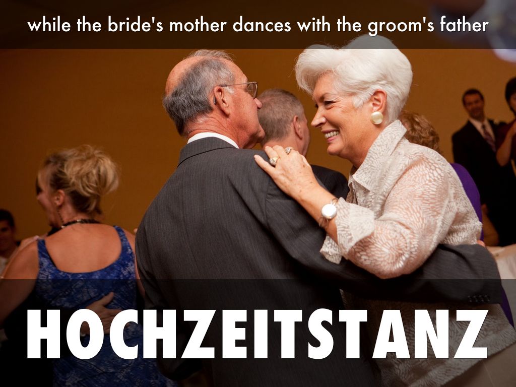 The first dance is danced by the bride and groom and is traditionally a waltz. The next dance is only for the bride with her father and groom with his mother, while the bride's mother dances with the groom's father.
