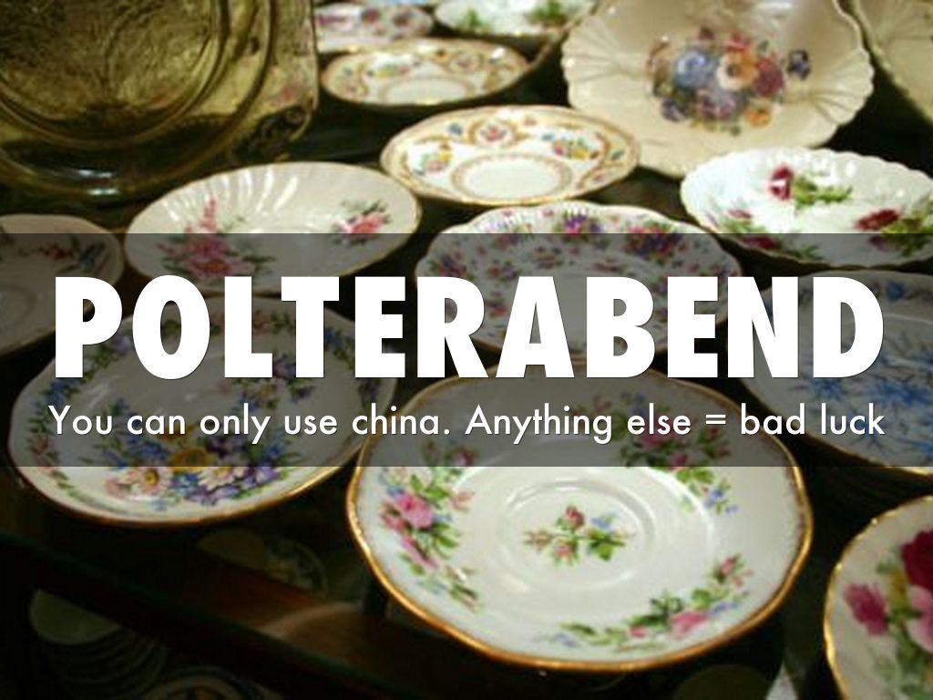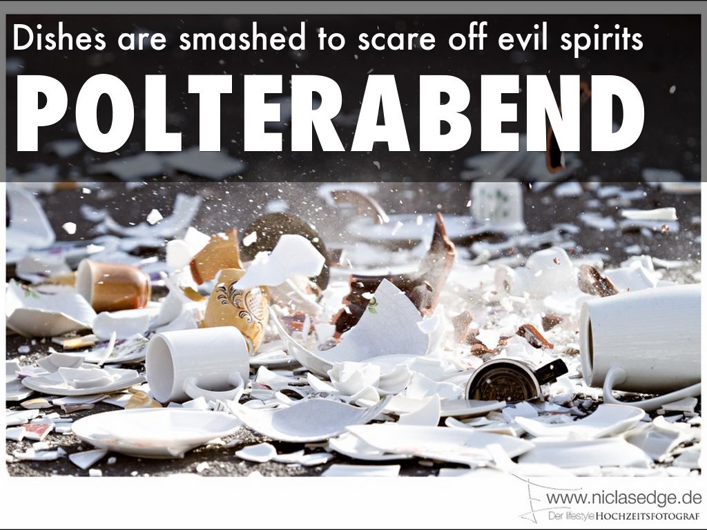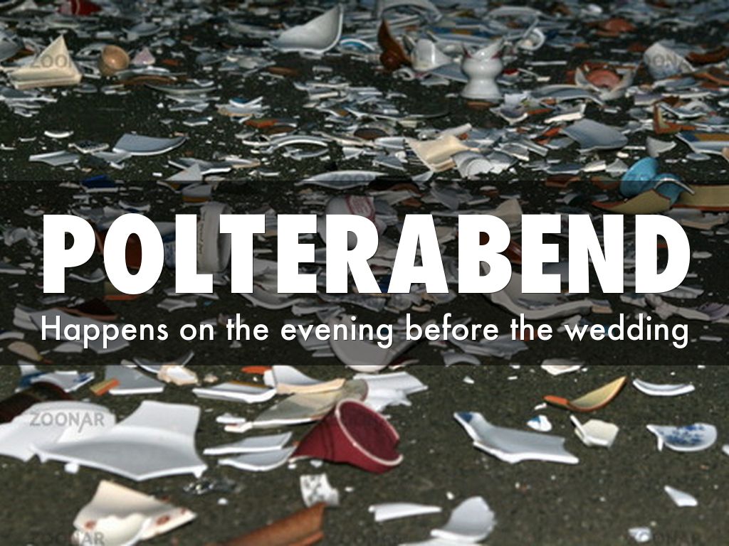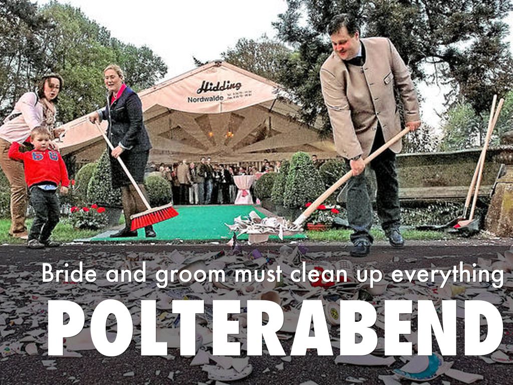 At a party on the evening before the wedding plates and dishes are smashed to scare off evil spirits. Only china can be used. Anything else would bring bad luck. The bride and groom have to clean up everything. This is to indicate that they can work together.