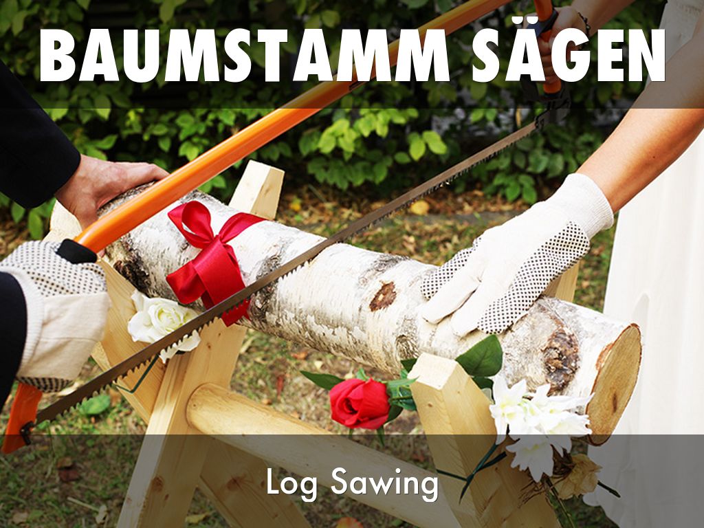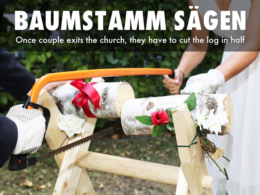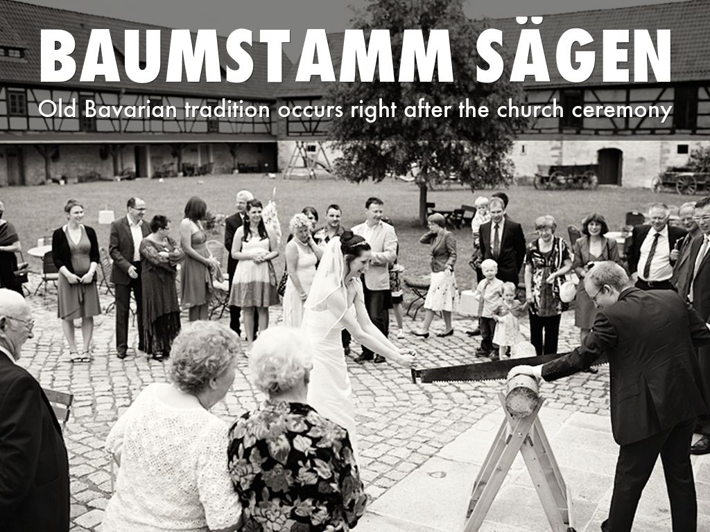 Another old Bavarian tradition occurs right after the church ceremony. When the couple exits the Church there is a log on a sawhorse and the couple has to cut the log in half! This is to symbolize the first tough tasks of their future they can accomplish together.