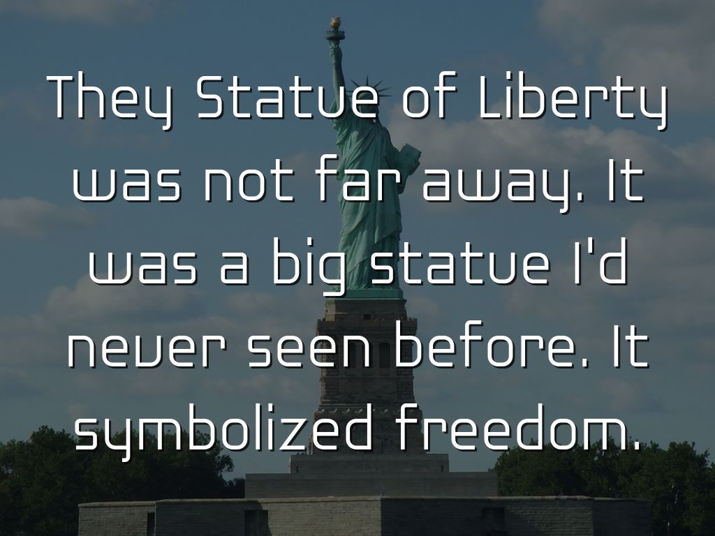 They Statue of Liberty was not far away. It was a big statue I'd never seen before. It symbolized freedom.