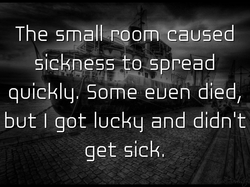 The small room caused sickness to spread quickly. Some even died, but I got lucky and didn't get sick.