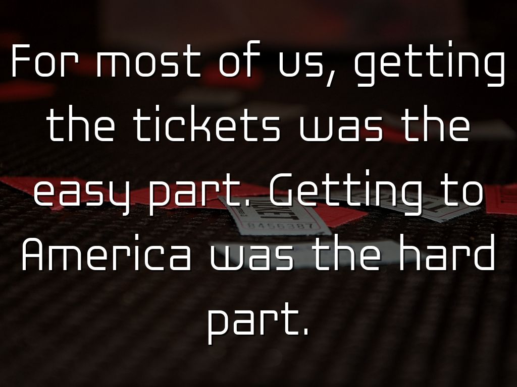 For most of us, getting the tickets was the easy part. Getting to America was the hard part.