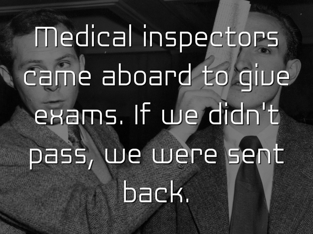 Medical inspectors came aboard to give exams. If we didn't pass, we were sent back.