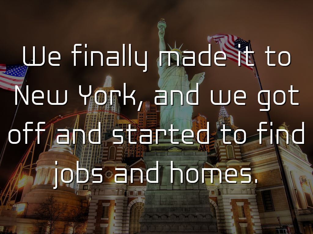 We finally made it to New York, and we got off and started to find jobs and homes.