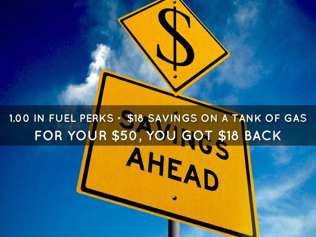 1.00 IN FUEL PERKS = $18 SAVINGS ON A TANK OF GAS