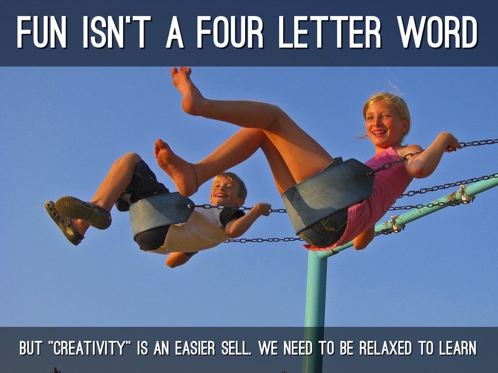BUT "CREATIVITY" IS AN EASIER SELL. WE NEED TO BE RELAXED TO LEARN