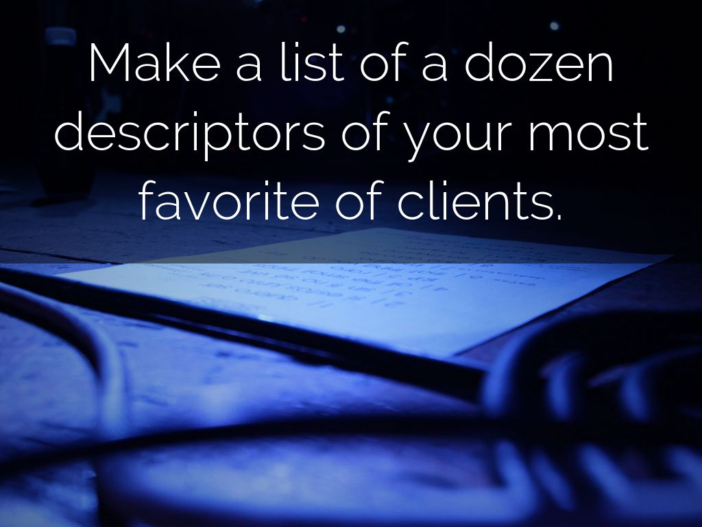 Make a list of a dozen descriptors of your most favorite of clients.