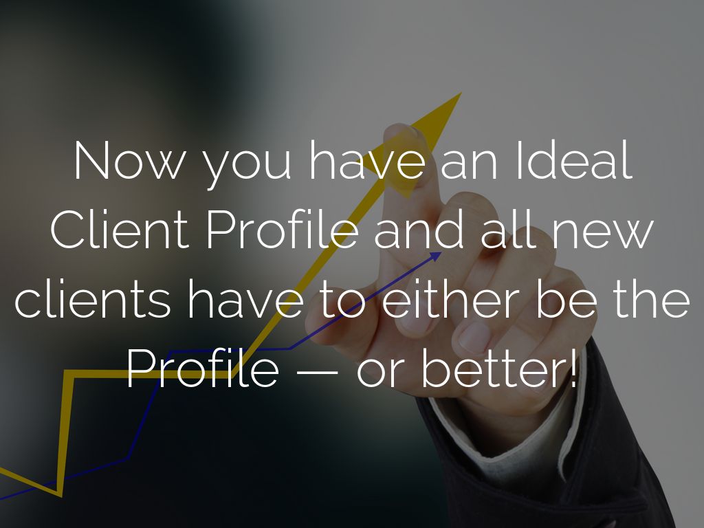 Now you have an Ideal Client Profile and all new clients have to either be the Profile — or better!