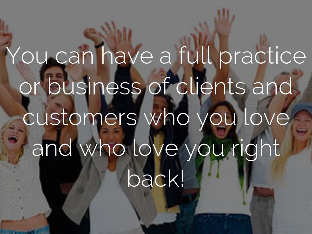You can have a full practice or business of clients and customers who you love and who love you right back!