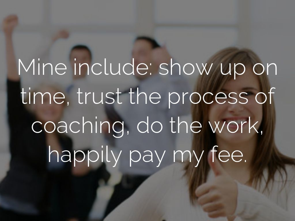 Mine include: show up on time, trust the process of coaching, do the work, happily pay my fee.