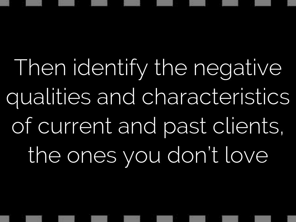 Then identify the negative qualities and characteristics of current and past clients, the ones you don’t love