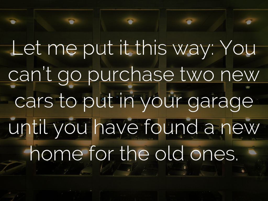 Let me put it this way: You can’t go purchase two new cars to put in your garage until you have found a new home for the old ones.