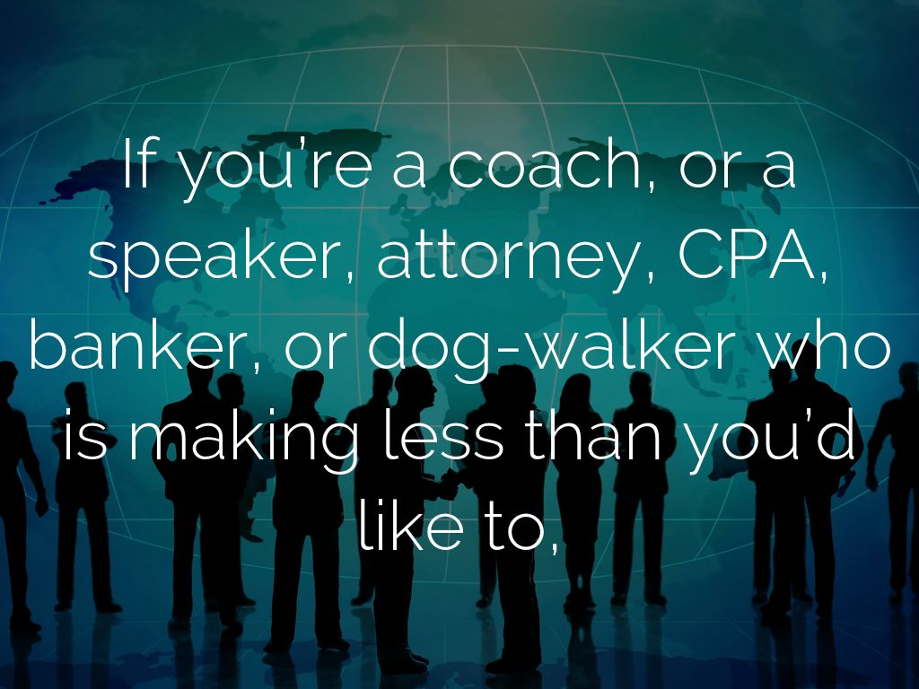 If you’re a coach, or a speaker, attorney, CPA, banker, or dog-walker who is making less than you’d like to,