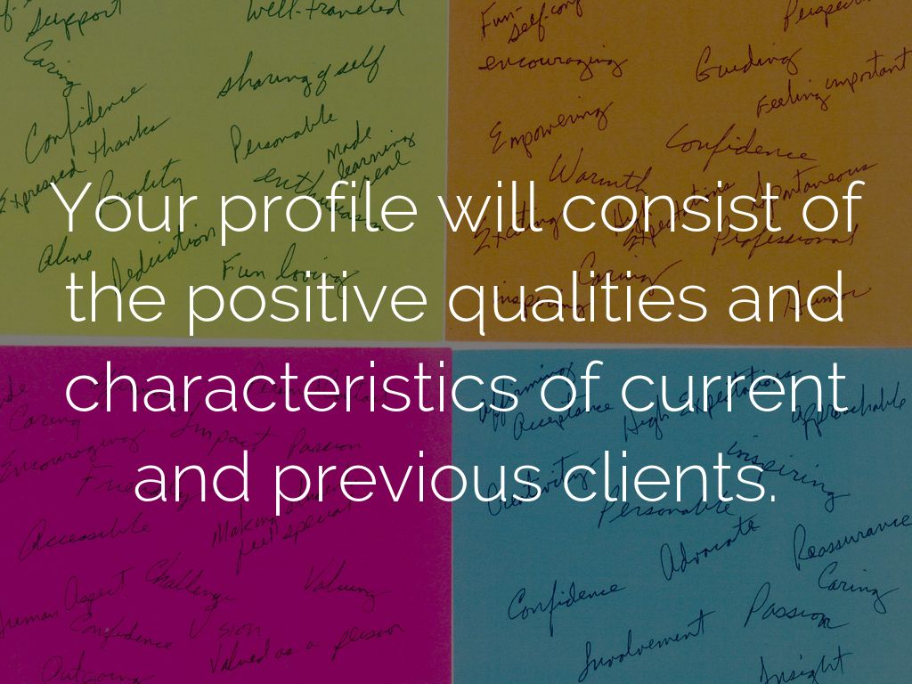 Your profile will consist of the positive qualities and characteristics of current and previous clients.