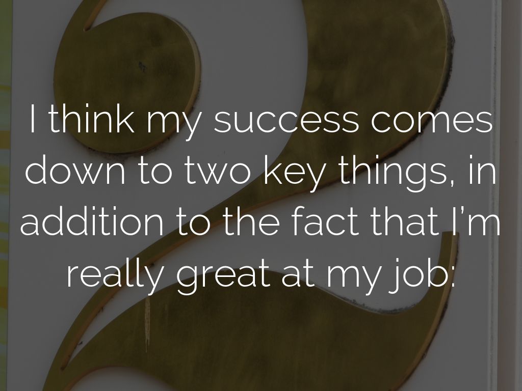 I think my success comes down to two key things, in addition to the fact that I’m really great at my job: