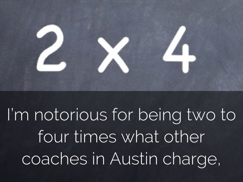I’m notorious for being two to four times what other coaches in Austin charge,