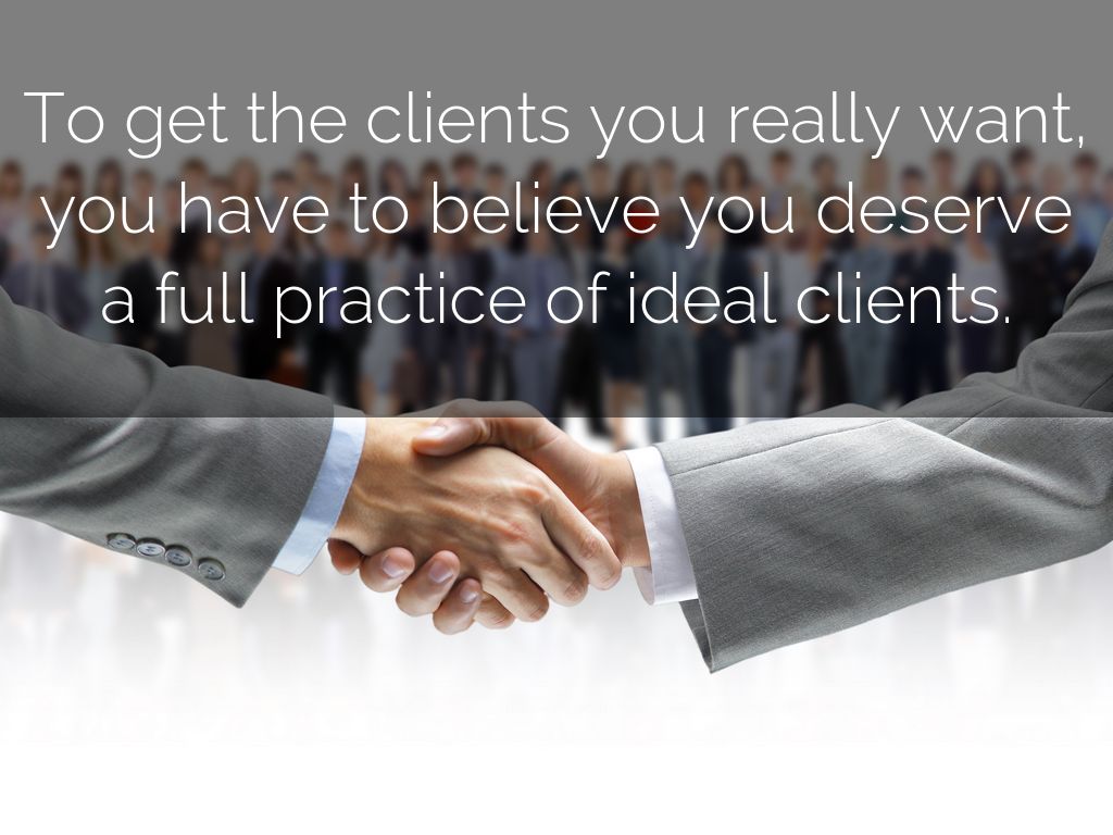 To get the clients you really want, you have to believe you deserve a full practice of ideal clients.
