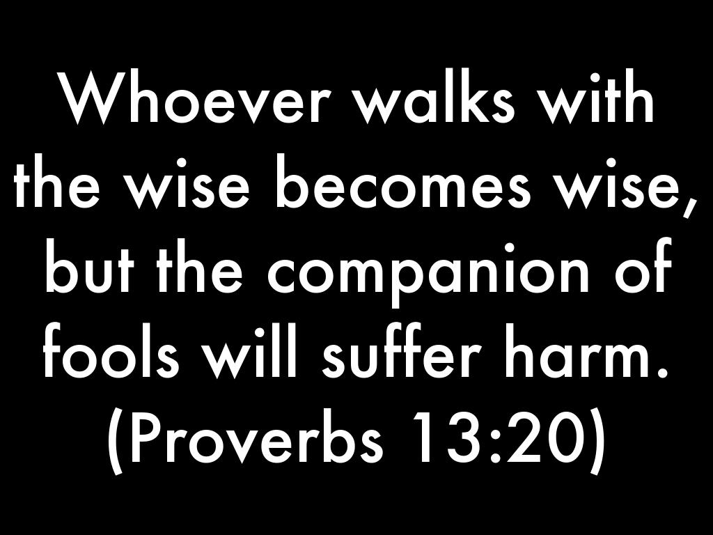 Whoever walks with the wise becomes wise, but the companion of fools will suffer harm.