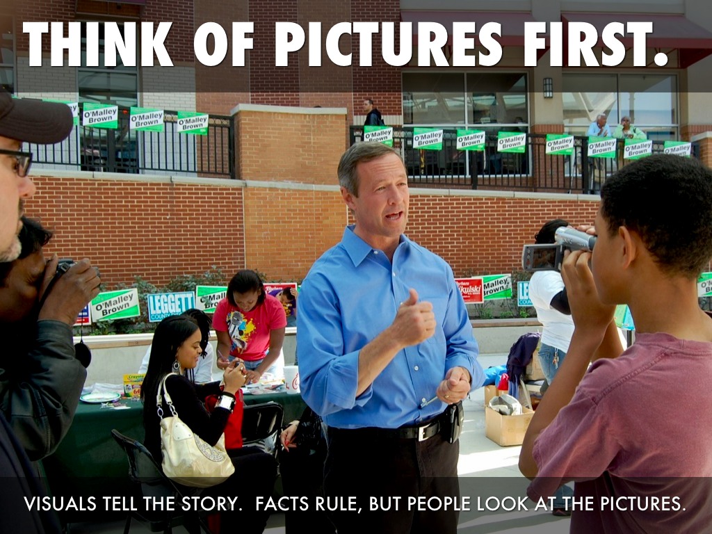 VISUALS TELL THE STORY. FACTS RULE, BUT PEOPLE LOOK AT THE PICTURES.