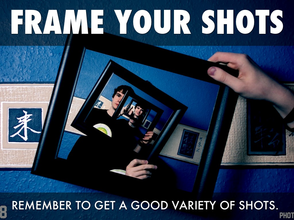 REMEMBER TO GET A GOOD VARIETY OF SHOTS.