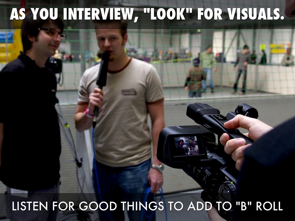 AS YOU INTERVIEW, "LOOK" FOR VISUALS.