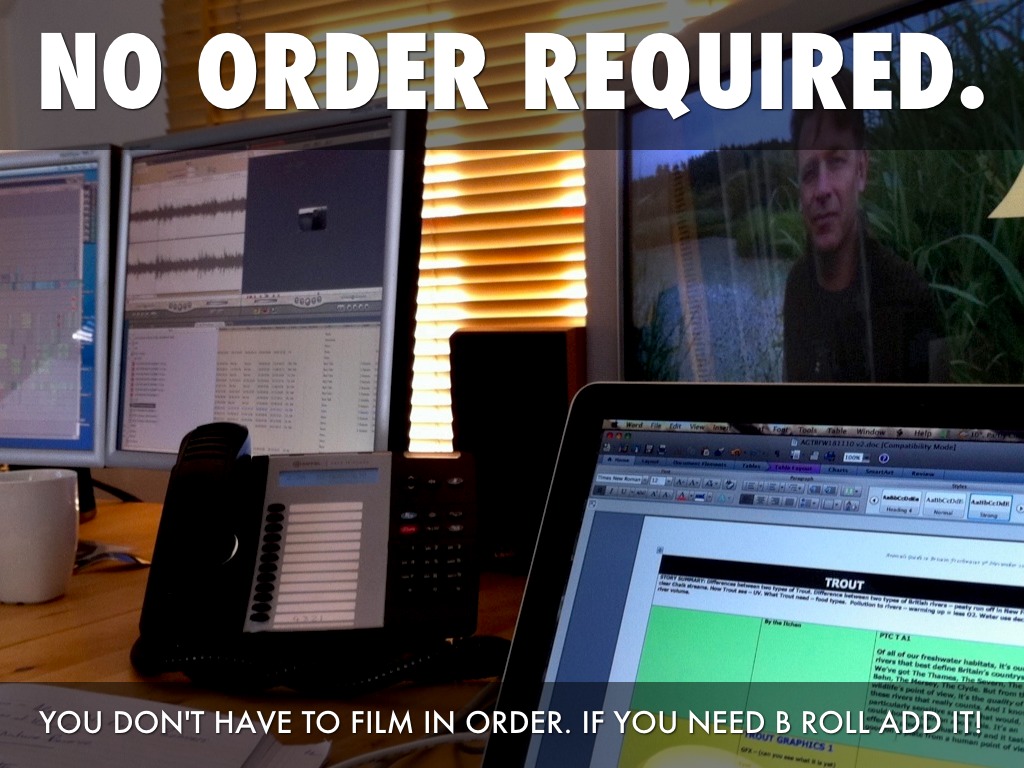 YOU DON'T HAVE TO FILM IN ORDER. IF YOU NEED B ROLL ADD IT!