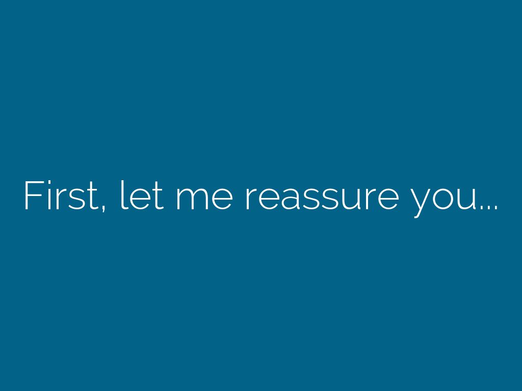 First, let me reassure you...