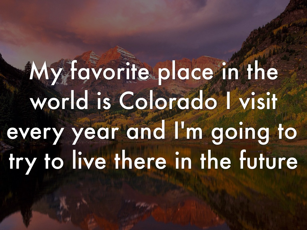 My favorite place in the world is Colorado I visit every year and I'm going to try to live there in the future