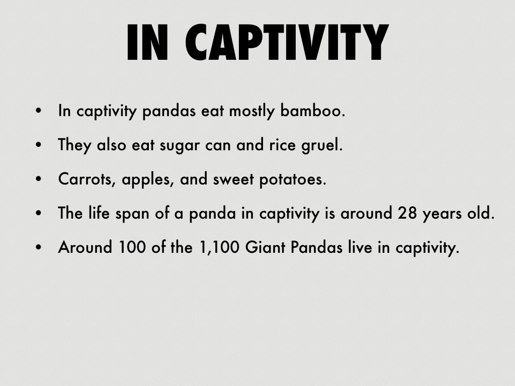 • Around 100 of the 1,100 Giant Pandas live in captivity.