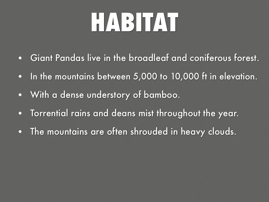• Giant Pandas live in the broadleaf and coniferous forest.